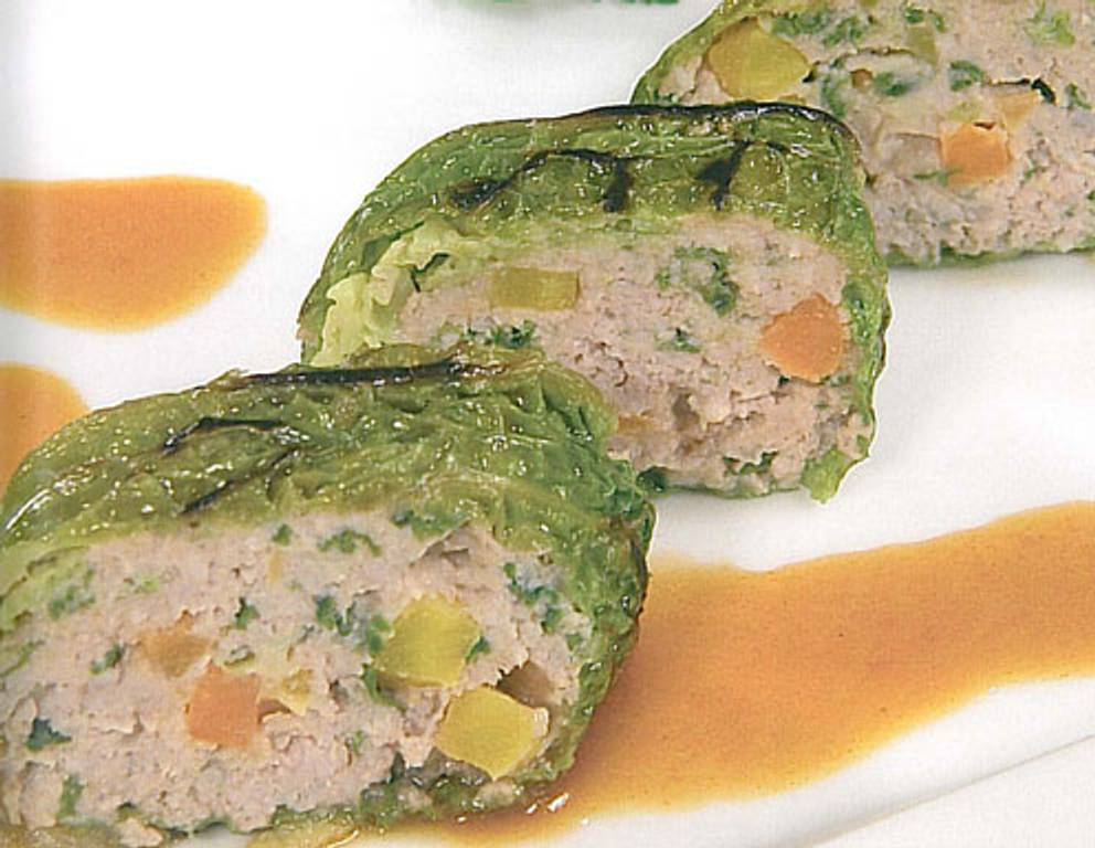 Die Kohlrouladen können noch mit Speckscheiben belegt und mit würfelig gschnittenem Wurzelwerk gebraten werden. Das Wurzelwerk kann passiert und mit Sauerrahm zu einer Soße verarbeitet werden.