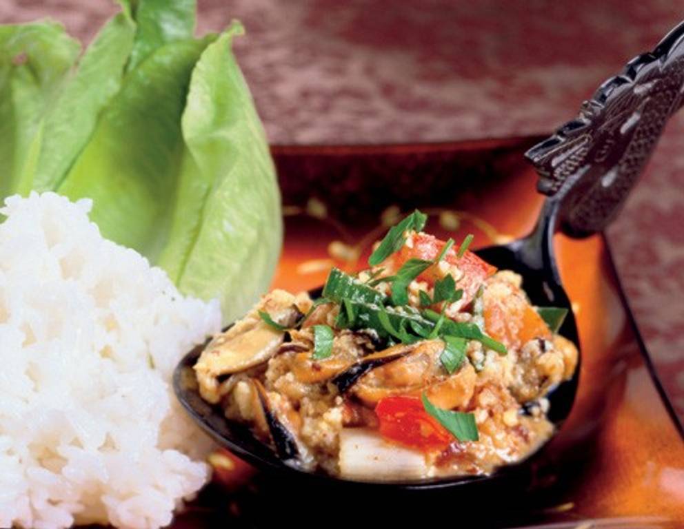 - Die Muscheln unter fließendem Wasser gut waschen, die Bärte entfernen und bereits geöffnete Muscheln aussortieren. In einem geeigneten Topf etwas Salzwasser aufkochen, die Muscheln einlegen und darin garen, bis alle Muscheln geöffnet sind. Herausnehmen, kurz abkühlen lassen und Muschelfleisch auslösen. Inzwischen die Tomaten kurz in siedendem Wasser blanchieren (überbrühen), herausheben, schälen und kleinwürfelig schneiden. Schalotten oder Frühlingszwiebeln in kleinere Stücke schneiden. Die geklärte Butter in einer Kasserolle schmelzen lassen und die Schalotten darin hell anschwitzen. Tomatenwürfel zugeben und kurz mitdünsten. Nun Muscheln zugeben, mit Piment sowie Salz würzen und so lange dünsten, bis sich die Flüssigkeit verflüchtigt hat. Dabei wiederholt umrühren. Die vorbereitete Nuss-Sauce einrühren und alles nochmals kurz erhitzen. Petersilie grob schneiden oder zupfen. Muscheln anrichten und mit der Petersilie garnieren. Für die Nuss-Sauce das Fladenbrot in etwas Wasser einweichen. Ausdrücken, zwischen den Fingern zerkleinern und mit Nüssen, Olivenöl, Salz, Pfeffer und so viel Wasser verrühren, dass eine dickflüssige Sauce entsteht (oder im Mixer pürieren).