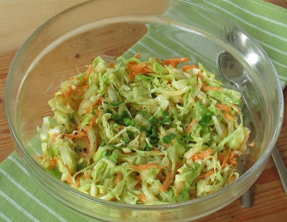 - Zwiebel schälen und fein hacken. Paprika vom Stiel und Kerngehäuse befreien und in kleine Würfel schneiden, Kohl in Streifen schneiden, die Karotte fein raspeln.