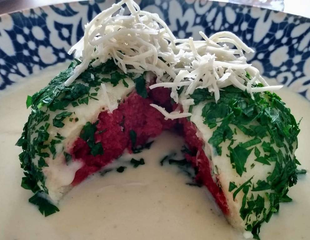 Die Rote-Rüben-Knödel machen sich als Einlage für Rahm-, Buttermilch-, Rind- oder Gemüsecremesuppe sehr gut.