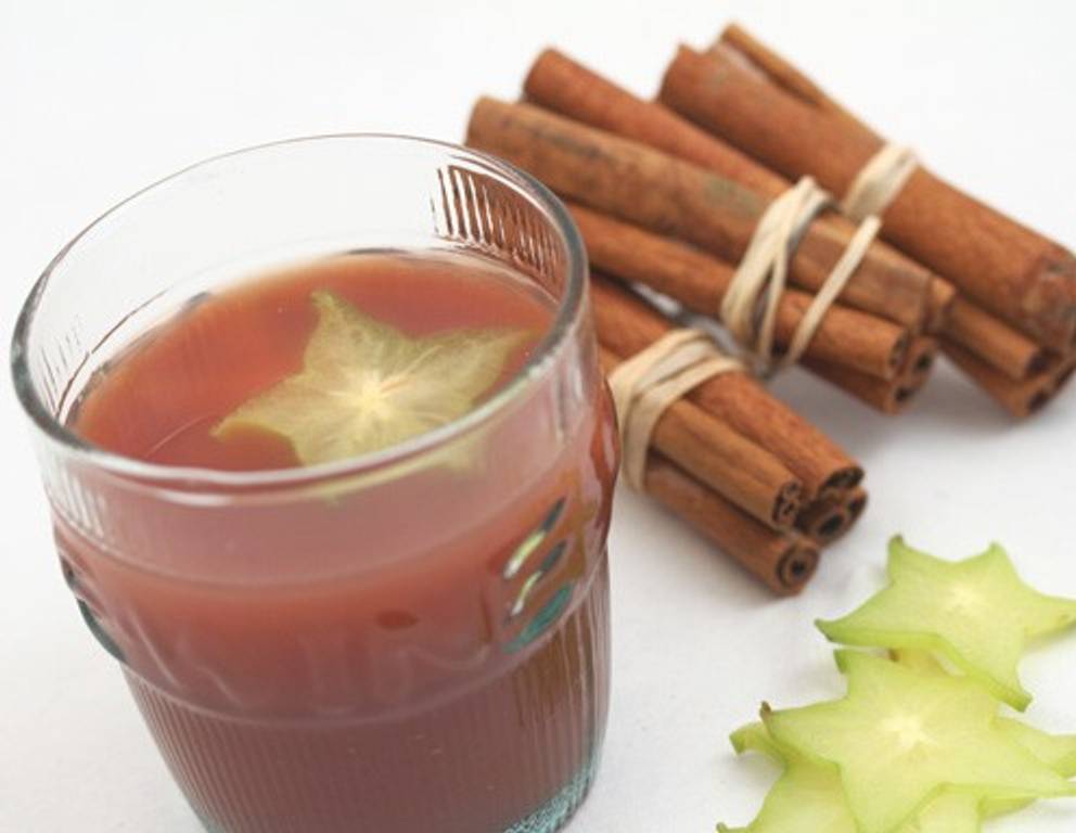 - Sternfrüchte waschen, in etwa 1/2 cm dicke Scheiben schneiden, die Kerne entfernen und in den weihnachtlichen Sternpunsch geben.