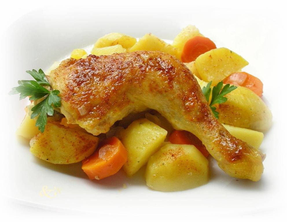 - Hühnerkeulen können am Gelenk in Ober- und Unterkeule geteilt werden oder im Ganzen gelassen werden.