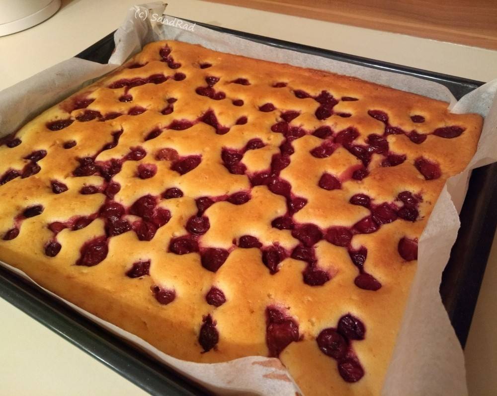 Danke für den Tipp mit dem Fehlen des Backpulvers!Ich hab es so abgewandelt; Mehl zur Hälfte griffig, zur Hälfte glatt, 1/2 Päckchen Backpulver, und statt 1/16l Rahm den ganzen (250ml), weil der Teig mir sonst zu fest vorkam.Das Ergebnis war ein lockerer, flaumiger Kuchen. Backzeit: tatsächlich die ganzen 40 Minuten bei 170° Heißluft.Gutes Gelingen!