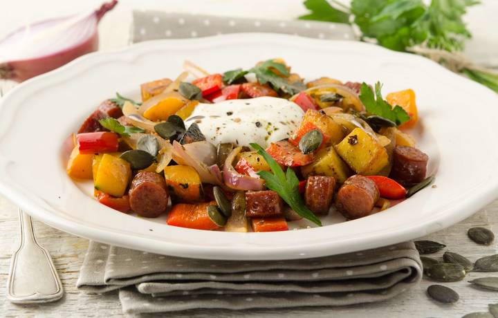 Kürbis-Paprika-Kaminwurzerl-Gröstl