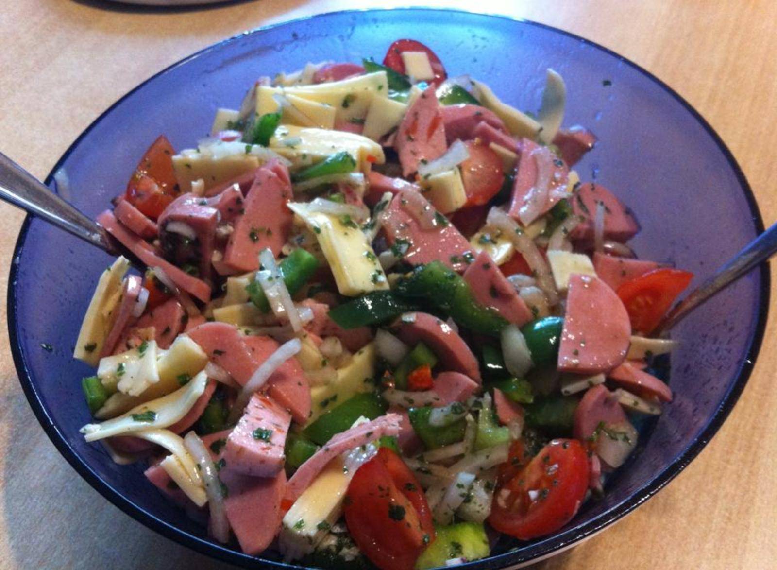 Anstelle von Krakauer kann für den Wurstsalat auch die klassische Kranzlextrawurst genommen werden.